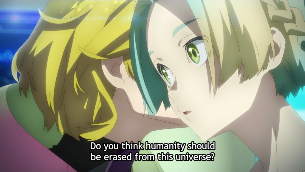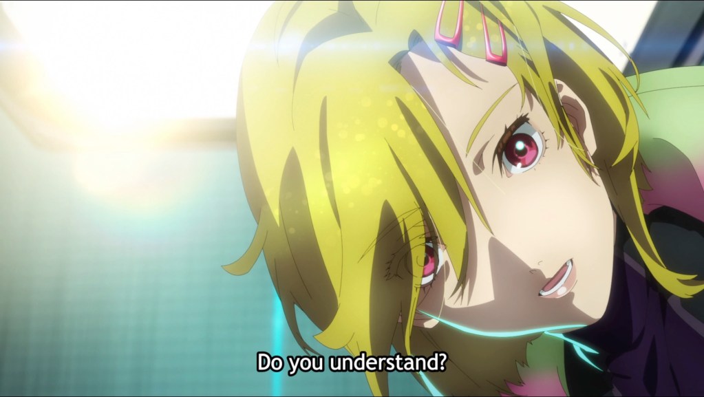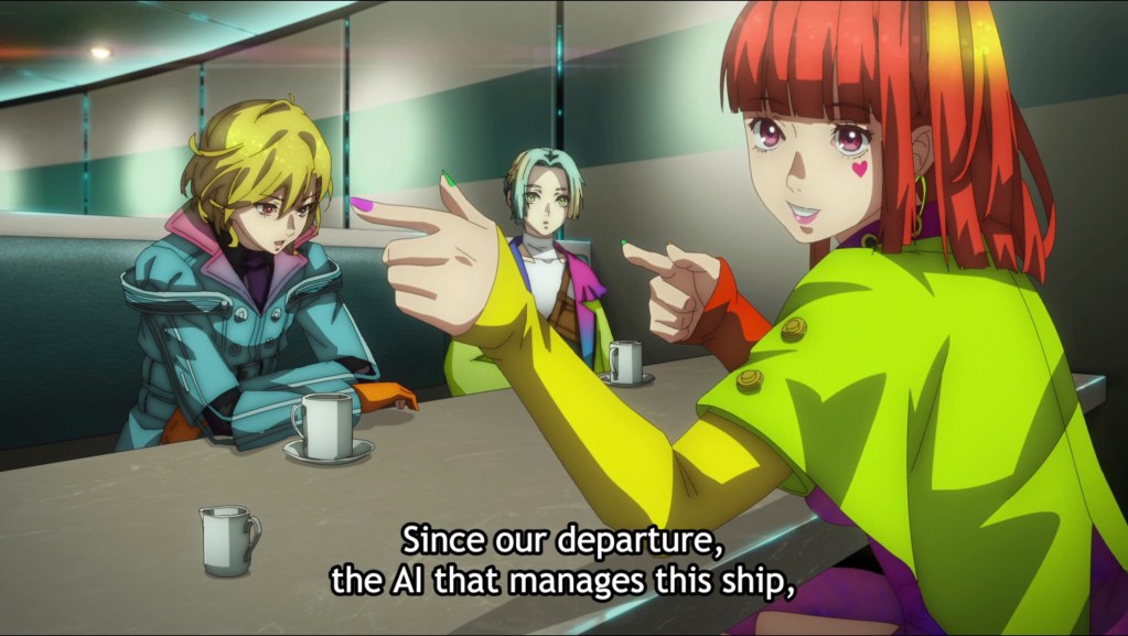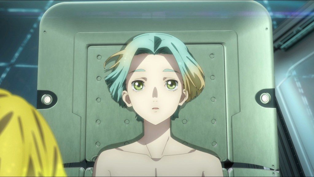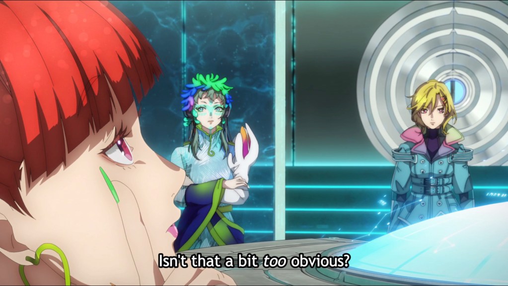 Whoa! Now, I love me a sci-fi space series, and goodness knows, they’re few and far between (especially those without “Gundam” in the title), but frankly, I don’t need space ships and star travel and futuristic gadgets to sell me on this one—they’re just the icing on the cake of this deliciously tense, mysterious, and beautifully animated premiere episode! It kept me guessing the whole time, and after that ending, I honestly can’t imagine where it’s going next! (Well, there’s a little hint, but still, how is that going to work?!) The animation is, appropriately, out of this world, with a great deal of attention being paid to microexpressions and movement to intensify the suspense and create a distinct way of being for each of the characters, who also have fairly striking designs. I saw no melt or awkward inbetweens; even the compositing, blending the 3D sets and assets into the 2D character animation, is notably smooth, so that the CG elements enrich the animation rather than detracting, enabling some very cool cinematography and inventive perspectival shots. The layouts are really strong, infusing the human drama playing out with tension and dynamism—even if they did slow me down as I watched, since I had to keep skipping back to take screenshots! The world-building is well executed, provoking me to ask many questions, but in a good way. The story seems to be set in a distant future where humanity has colonised the cosmos, and some have transcended gender, like Yuri (potentially?), which makes me wonder whether humanity is still human, or rather, has been replaced by something else, a la Nier:Automata? Guess we’ll find out. Meanwhile, Yuri’s uncanny sense of knowing certain things despite the amnesia is also intriguing, and, given the emphasis on knowledge and understanding, there may be some mysteries here far deeper (and with greater spiritual meaning) than simply the question of who is infected. After all, the Greek word gnosis, from which the title derives, means “knowledge of spiritual mysteries.” Needless to say, this space mystery series has already gotten under my skin, and I can’t wait for episode 2!