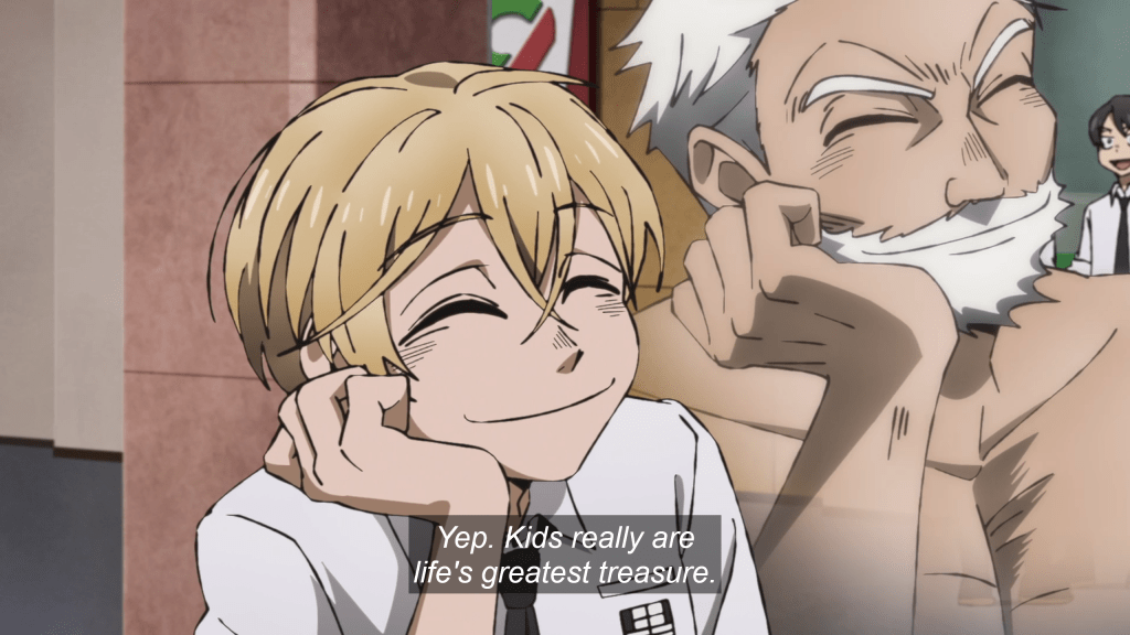 For instance, when fighting Hitoshi Amaya, a close friend who has turned traitor and become a torturer, Santa feels a strong desire to protect him, even as he tries to stop him. And so he saves Amaya, despite the boy’s betrayal. And when the headmaster of Daikoku Welfare Academy, Hifumi Oshibu, shows his true face (a callback to Dahl’s The Witches?), Santa becomes irate and puts himself on the line to rescue the children and battle the headmaster, who embodies the evil, abusive institution. He will protect the kids.