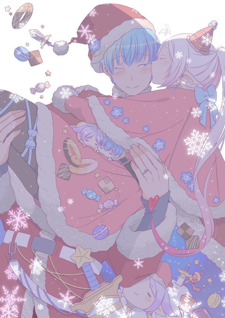 I’m going to just imagine that this AU illustration of Himmel and Frieren dressed up in Christmas gear and ever so cutely clinging onto and kissing one another really happened. Yep. I like this universe better. ;_;