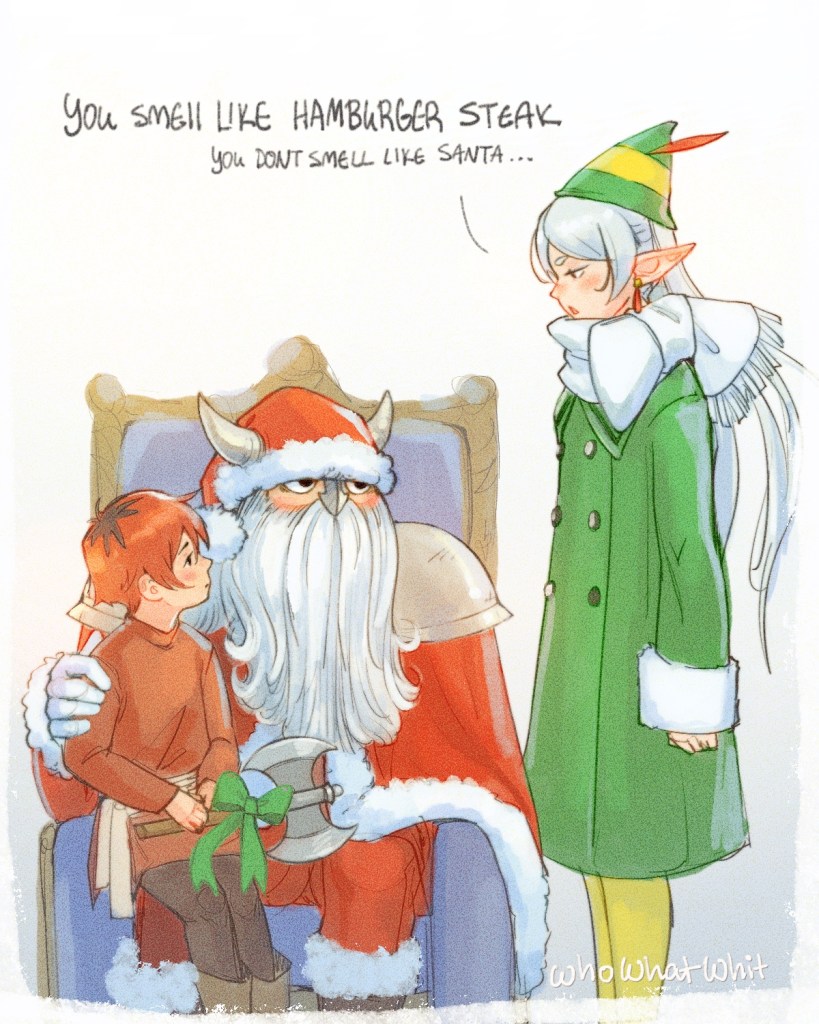 And no surprise from our readership—Frieren was the winner! Here’s the ho ho ho-larious illustration Whit came up with: