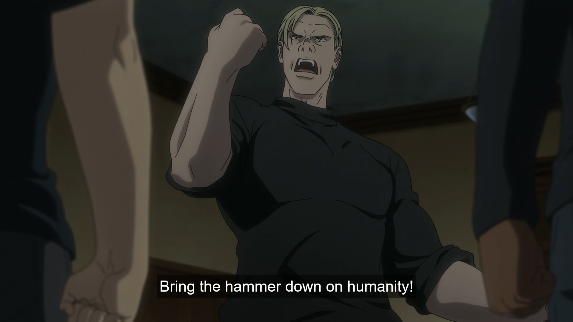 Setting aside the fact that torture has been proven to provide highly unreliable information, this is an inane episode with lame “humor,” built on a paper-thin premise that can only go down from here. It’s meant to be a comedy, but the humor relies on one lone element: the juxtaposition between “nice guys” and the horrible things they do. Let me save you some time: It doesn’t work. It just isn’t funny. Now, there is of course a second level of “humor” at work here too, though for now at least it’s implicit rather than explicit, and that is the parallels with BDSM. Sero is clearly a masochist, and Miké a sadist, while Siu’s embarrassment at having a loyalty card to the torture device shop may hint at a parallel with adult stores. It feels like the episode is always on the verge of a wink-nod, all the while feigning innocence. The potential for this becoming a stronger undercurrent as the series progresses puts the final nail in the coffin for me for this one.
