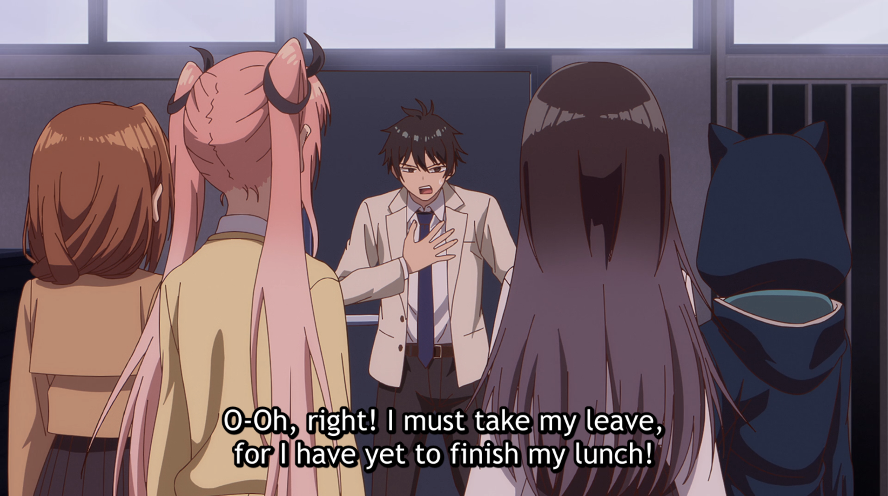 I wasn’t sure what to expect with this one, since the premise has the potential to devolve into squicky teacher-student romance scenarios, after all. This opening episode seems to firmly reject that possibility, however, which is encouraging. The show reminded me a bit of Interviews with Monster Girls, which was quite a fun series. I enjoyed all the eccentric characters, as well as Rei’s reactions to the various mysterious phenomena (he’s more fazed by the principal’s change in appearance than anything else, it seems). And naturally, I’m curious about why Rei is so bitter toward humans, and how this new experience might change his perspective.