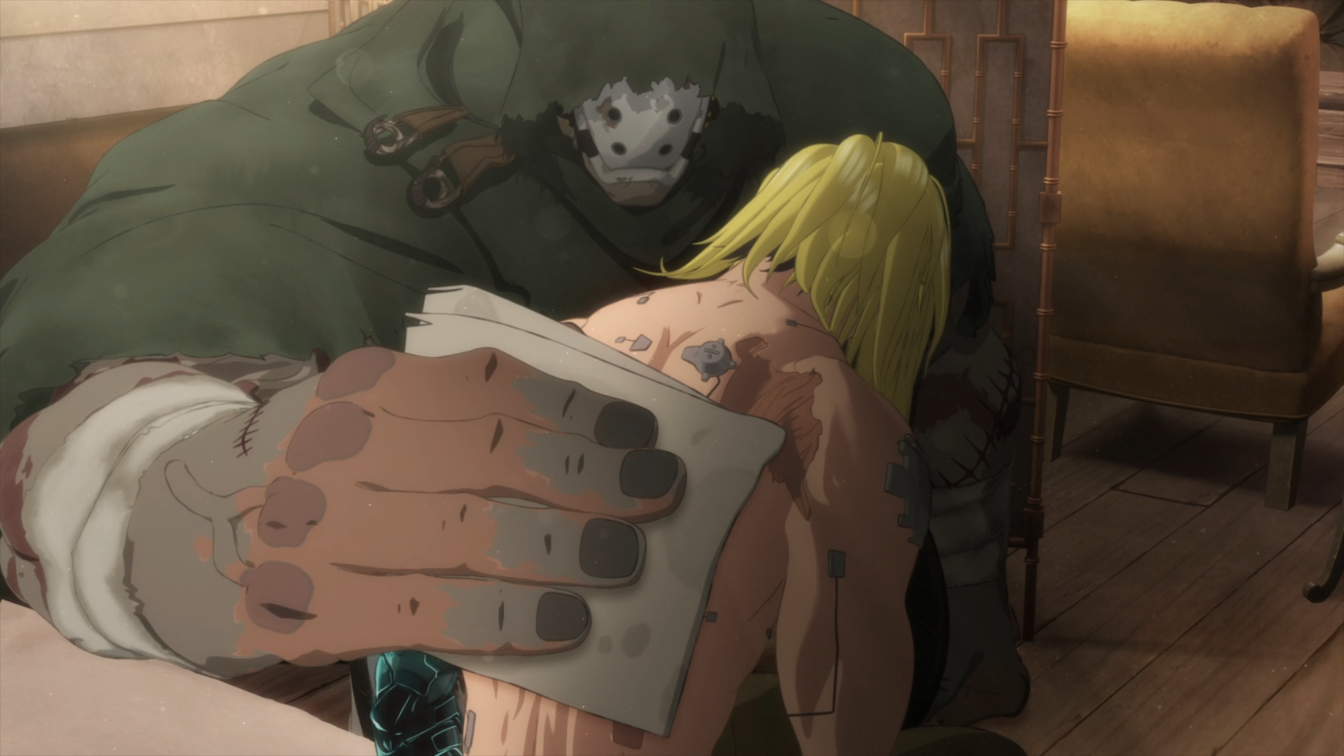 …by the last half of season one (which I later returned to) was full of depth and showed that the story was far more complex than the early episodes indicated. And that depth continues in season two, with a focus in one scene that involves Meryl, Milly, and Zazie the Beast (who is know sort of a buddy to girls?) on the ethics of humans using the living, breathing, thinking Plants for their own survival, while the final few minutes are sorrowful, featuring an oucast caregiver caring for “Eriks,” despite his own limitations and emotional scars. The tragedy of Vash was expressed so well in the original series, but it feels as if it may be even better shown here. What a wonderful remake we’ve received!