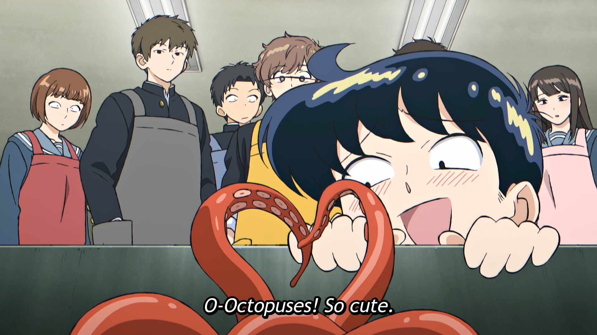 I was suitably impressed by episode one. Having read a bit of the manga, I immediately understood that this series, which could easily have been developed as an ecchi one, desires to be more of the meaningful variety; episode one conveys that feeling through its entire focus on the protagonist worrying about how people will see him when his inner otaku comes out. He’s written in the same vein as many modern romcom MCs, like Ichikawa from The Dangers in My Heart. But what further sets the anime apart is that may be an improvement on the manga; the director adds so many little flourishes that fill our senses, refusing to just create “another anime romcom.” They add a dynamic quality to the series that enhances it—and which will perhaps lead to an adaptation that is better than the original.