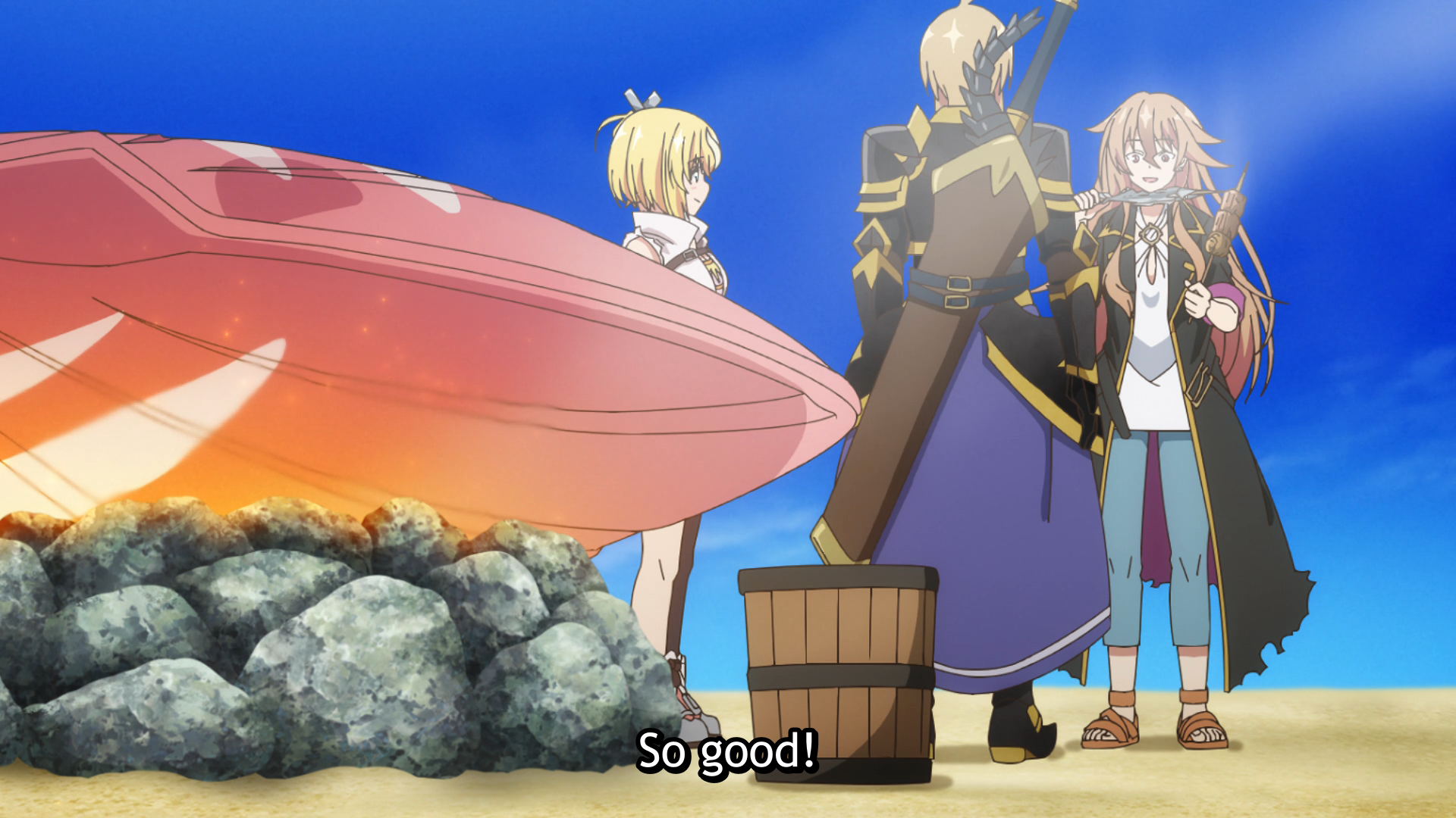 The first episode of Vending Machine season 3 is fairly slow-paced. There isn’t much at stake, and the most exciting part—other than a barbecue surprise—is a tease about Kerioyl and his family. In the second half of the episode, the characters visit a new stratum, and the music there certainly fits the tropical setting. The director of this stratum seems to be a child, but considering how odd some of the other stratum directors are, he really isn’t that out of place. The ending theme is enjoyable and features cute chibi-style versions of the characters. I will definitely continue with the season and plan to rewatch the first episode once the dub releases!