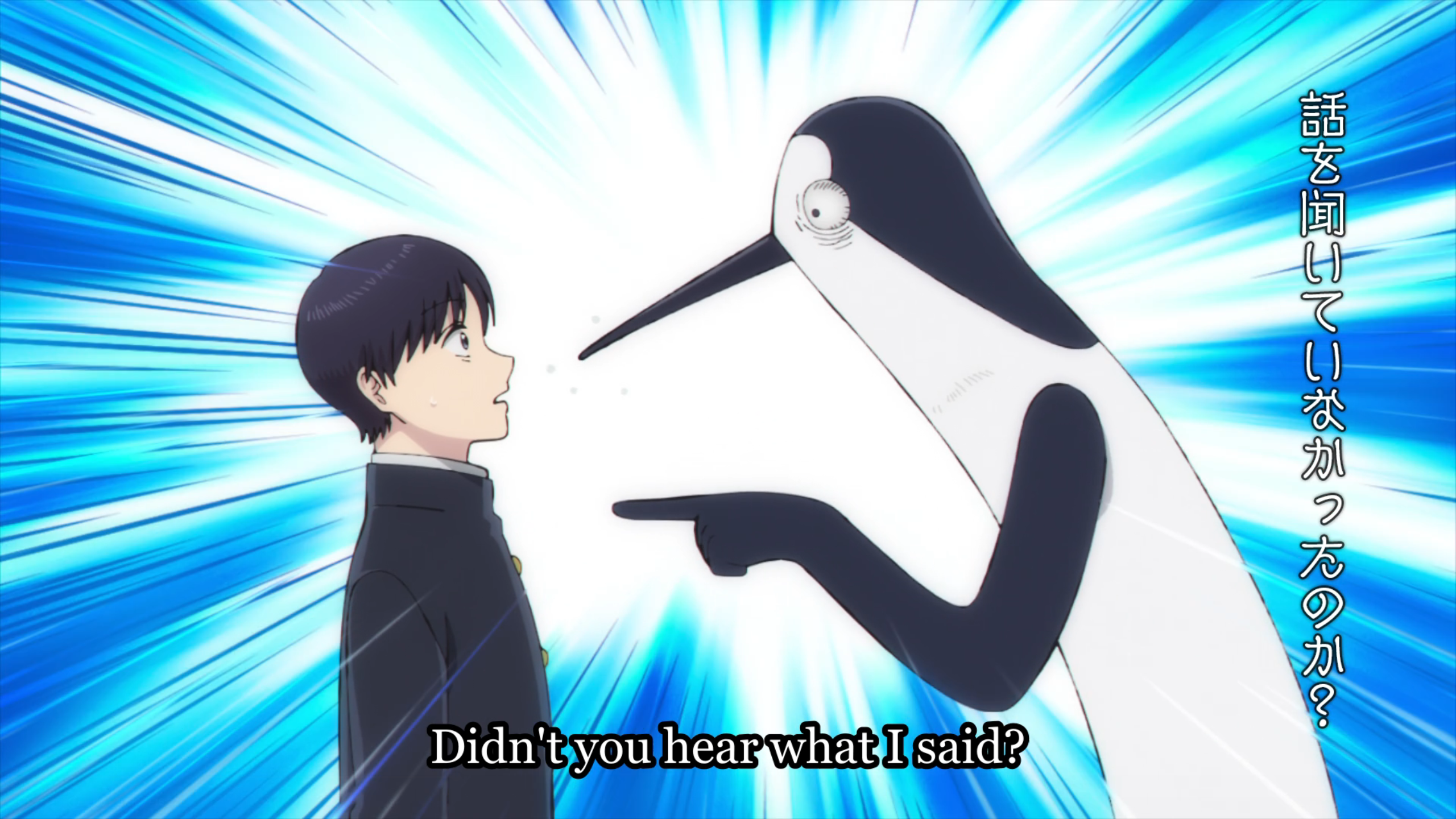 Charming, wholesome, and maybe a little weird—that’s the vibe they’re going for at least, but unfortunately for me, it’s only weird. Kujima’s design and voice continued to irk me throughout the entire episode, and by the end, I was happy I didn’t have to watch any more of it. While it’s true that I’m not the biggest fan of anime about goofy talking animals in mundane settings, this one especially bothered me because of how unnecessarily weird it is. I can’t help but feel that the humanoid part of Kujima’s identity ruins it all, because I think there would be enough potentially interesting story content about Kujima as a Russian migrating bird without the extra weirdness.