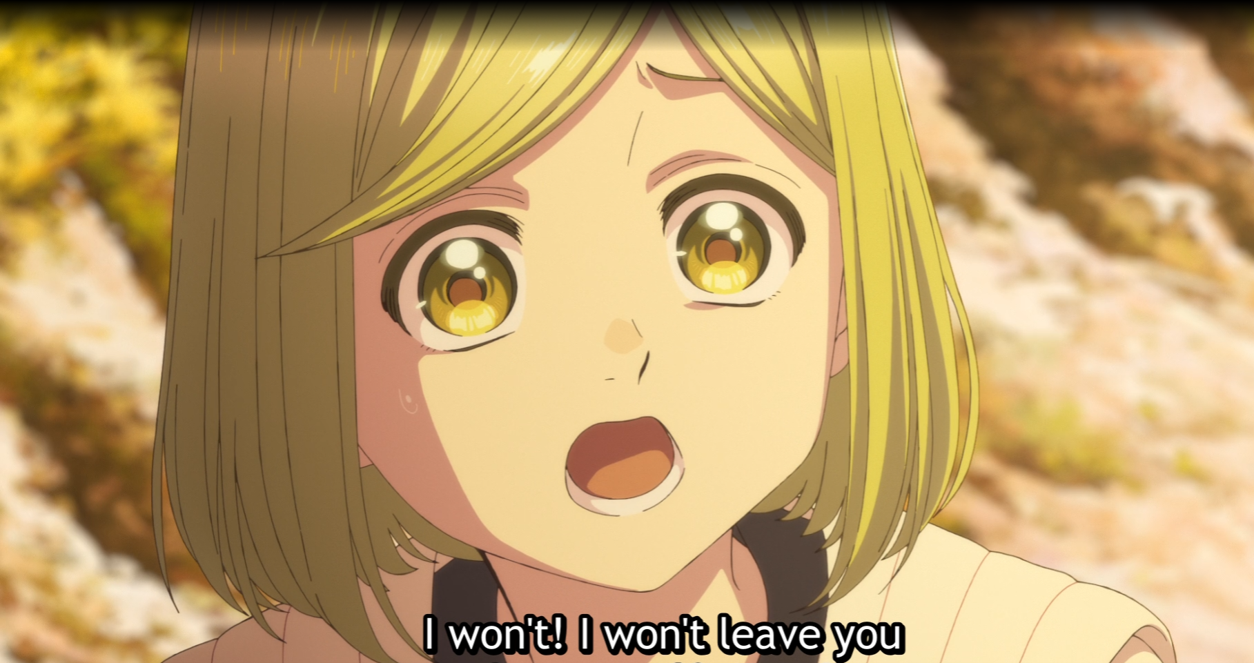This show has some unique qualities that made its first episode a gripping watch. An all-too-plausible reminder that the wheel of history never stops and everything is possible. A naturalistic descent into the tribal world of The Walking Dead or The Road, but without zombies or a nuclear apocalypse. The feeling of a gritty historical anime, coupled with the sense of uncertainty of our present. A world that feels plausibly past and future at the same time. A cool sound design; a unique, somewhat feistic art style that brings to mind Ping Pong the Animation, and which works wonders to illustrate the humanity and the decadence of the inhabitants of this future Sangoku era. But even though I feel curious about the characters that appear in the opening and the glimpses of the world the creators have imagined, I’m afraid this one crosses a line for me. I’m not necessarily against the (mostly implied) horrific violence we see here, nor killing off characters after endearing us to them, but I do not like to see the hand pulling the strings.