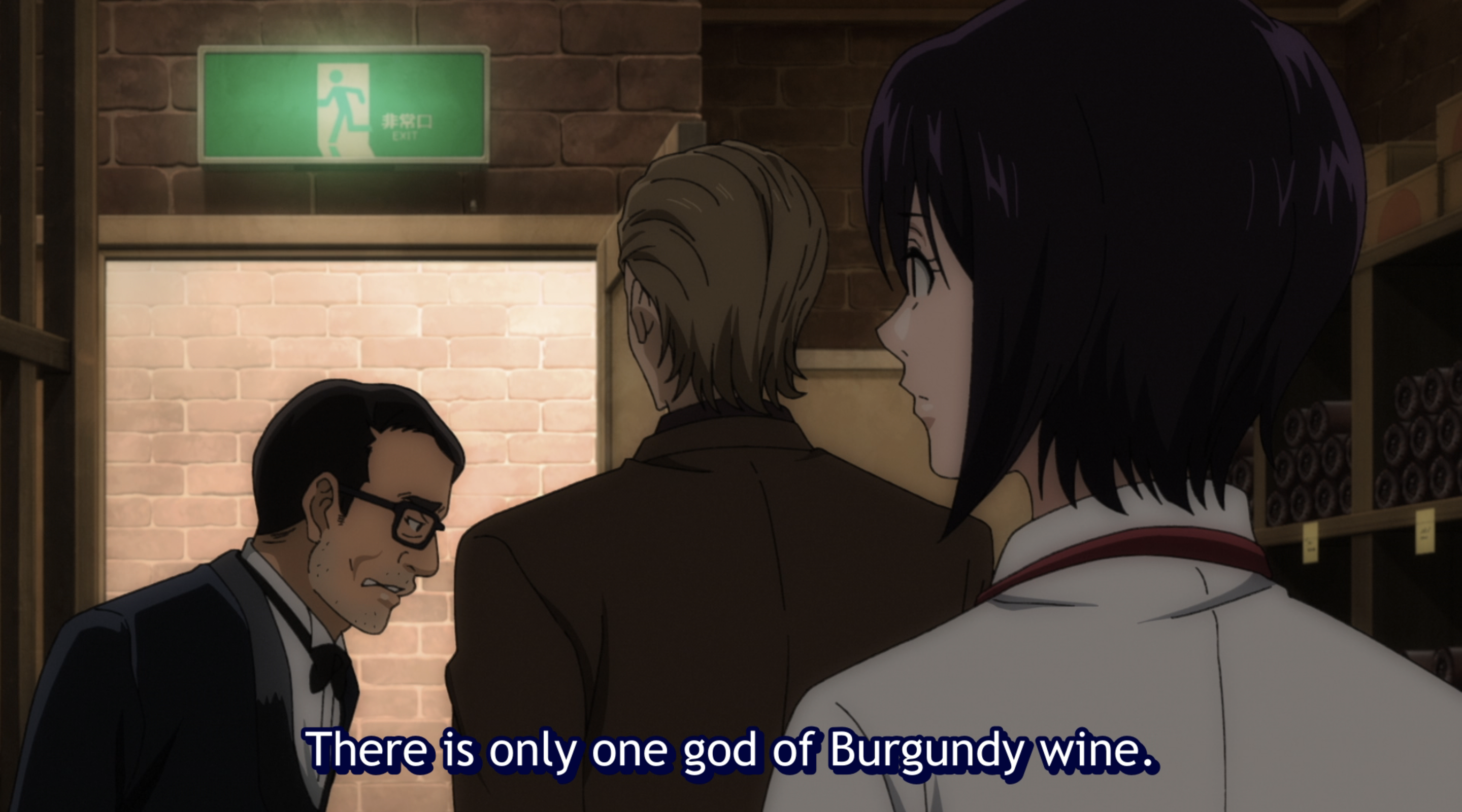It’s here! The melodramatic, high-stakes, psychedelic wine-tasting anime no one ever asked for! And it’s a riot! I couldn’t keep a straight face for more than a minute or two before another over-the-top moment appeared on screen. I don’t think it’s meant to be nearly as funny as it is. Its aroma brings to mind the battle of wits from The Princess Bride, except there’s no poison and everything is played hyper-seriously, which ends up making it laughable in a different way than the classic confrontation between the Sicilian and the man in black. I know even less about wine than Shizuku does, so I have no doubt that there are aspects of the story that are going over my head or that I otherwise fail to appreciate. All that said, I was tremendously entertained by this premiere, so I think I’m going to come back for at least another glass.