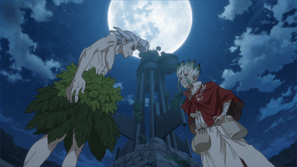 Welp, we have finally arrived, guys! We’re at the grand finale of what has been one of the most amazing anime journeys of my lifetime, and this premiere episode shows why. It highlights everything that makes the show a must-see and each manga volume a must-read. While it’s easy to write off the story as repetitive—and even I can see the validity of that argument as a dyed-in-the-wool Dr. Stone fanboy—it’s the execution that keeps things fresh and entertaining, especially the character interactions. It’s always fun seeing how our group integrates former foes, and since Xeno and Stanley were two of the deadliest opponents, you can’t help but watch them to see if they have ulterior motives as they join the fold. And of course, the show excels on the production side with regards to music, animation, and the English Dub—Aaron Dismuke continues to play our leek-haired science boy with the same aplomb as in Episode 01. You can tell he’s having a ball as Senku, as does the rest of the cast with their characters. ASIAN KUNG-FU GENERATION takes over OP Song duties with “Skins,” which sounds OK, but honestly, after coming from the absolute BOP that is “CASSANOVA POSSE,” I can’t say it’s a real bop. Burnout Syndrome comes back one more time for the ED song with the appropriately titled “ROCKET,” and it sounds really cool—a nice ending song to close out the series.