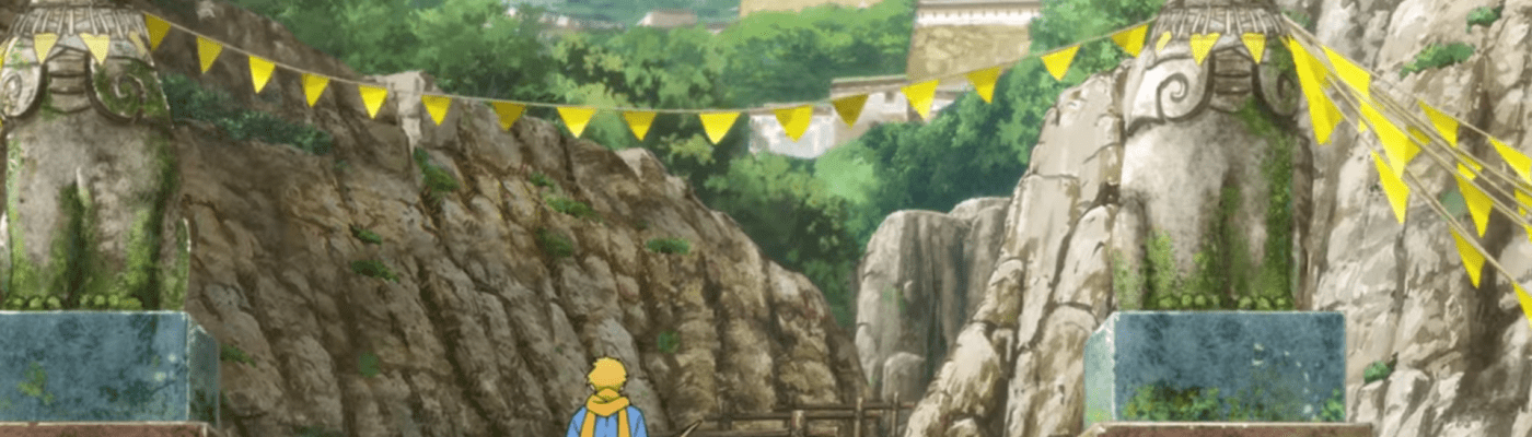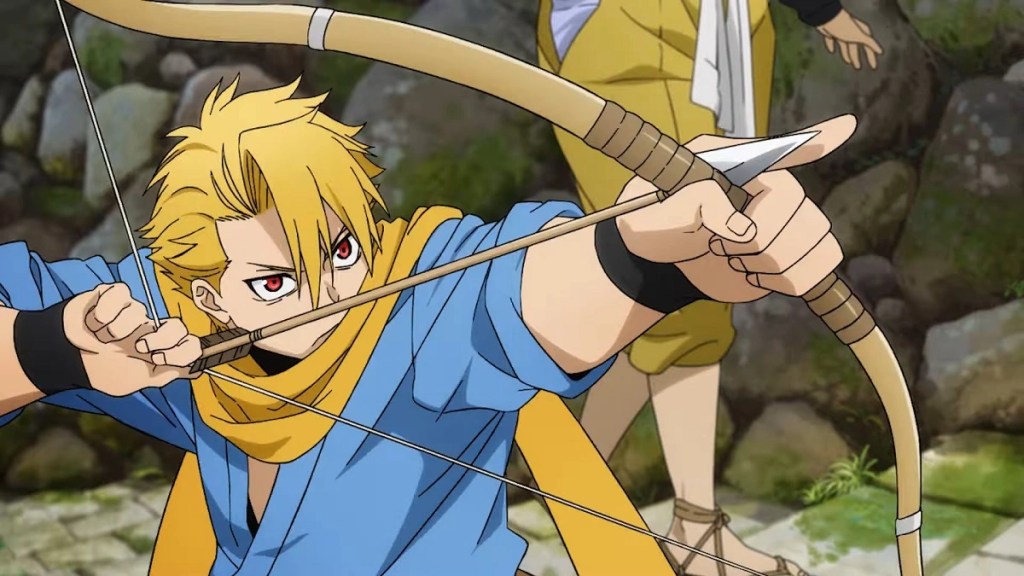 Yuru and Asa, “the children dividing day and night,” are twins. One of them was born at the end of the night, the other with the first light of day (so far, we don’t know which is which). Consequently, their fates are as different as can be. Asa now spends her life indoors in a stone palace at the center of an agricultural mountain town, with her brother as her only friend. Yuru is free to roam around the village, where he has become a pretty good archer. Today, Yuru has hunted down a pheasant (which we see from the pheasant’s perspective, pretty cool). When he comes home, something he calls a “dragon trail” appears in the sky. We learn that he is worried about his sister, who has abandonment issues. Their parents, we are told, ran away. Yuru wants to make himself useful by procuring food for the village so that he is not sent to work in the “outside world” and can be there for his sister. But after buying her a present from Dera, the medicine man, he starts hearing the “dragon roar” louder than before. An unseen hand does a magic gesture, and something appears in the sky. He does not have words for it, but we do. Isn’t that…a plane?